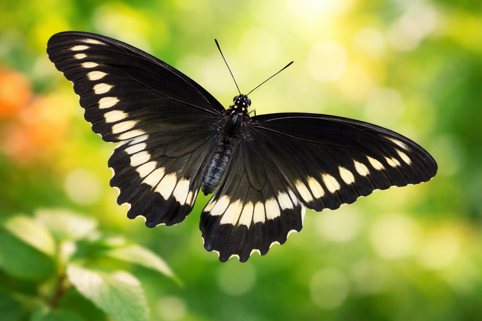 Szárnyfesztávolsága általában 9–11 cm, szárnyai fekete alapszínűek, amelyeket jellegzetes, világos (krémes-sárgás) foltsor díszít. Ez a kontrasztos mintázat könnyen felismerhetővé teszi.