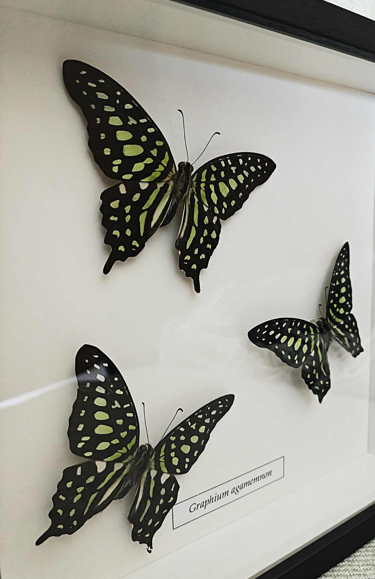 Ebben a kompozícióban a Graphium agamemnon faj három példánya látható egy keretben elrendezve. A lepkék eltérő szárnyállásban kerültek elhelyezésre, ami mozgalmas, természetes hatást kelt, mintha a lepkék éppen repülés közben lennének.