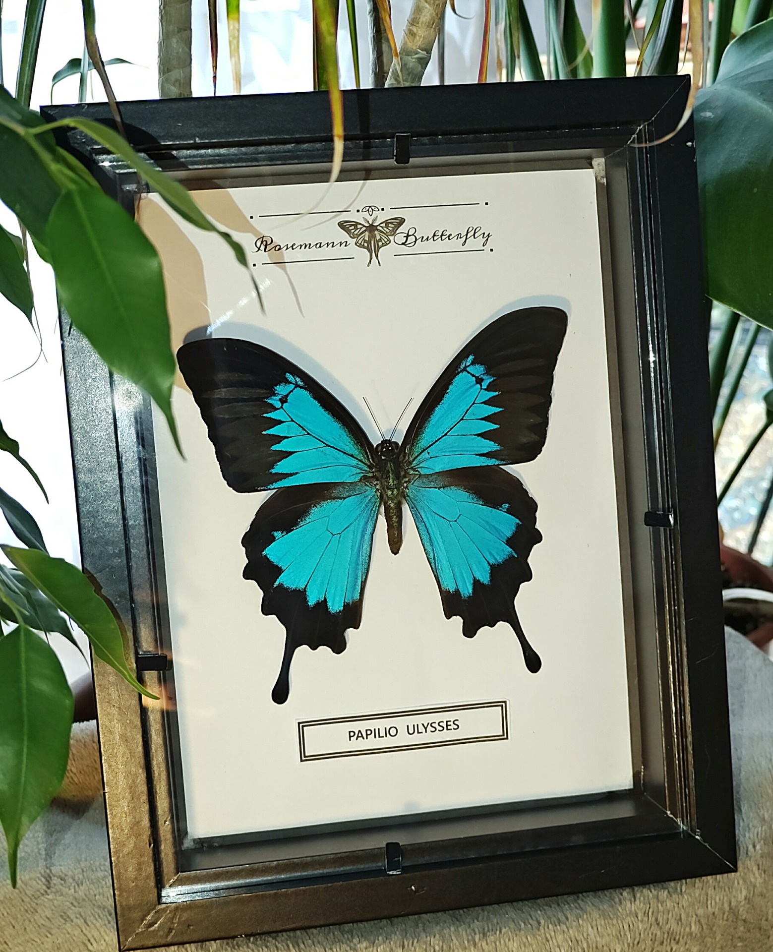 Ez a kézzel preparált, fekete keretben elhelyezett példány különleges eleganciát sugároz, és lenyűgözően mutat bármely térben. Tökéletes választás lehet természetkedvelőknek, gyűjtőknek, vagy azoknak, akik egy látványos, trópusi hangulatú díszt keresnek otthonukba.