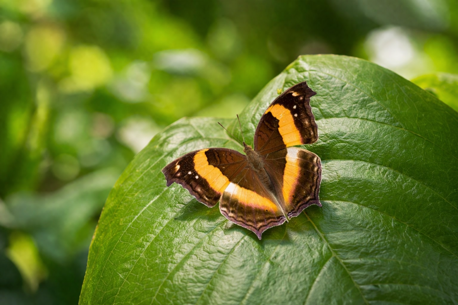 A kifejlett lepke egyik legszebb sajátossága a kontrasztos mintázata: sötétbarna alapszínen húzódó narancsos sávok, míg a szárny fonákja meglepően visszafogott, levélszerű mintázatú. Szárnyfesztávolsága általában kb. 6–7 cm.
